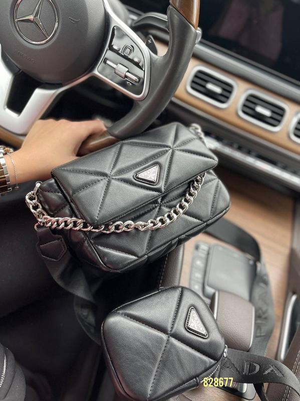 828677 НОВИНКА❤️🔥 Сумка Прада 2 в 1 кожа Цена : 2790 грн Цвет: черный фурнитура с лого Ремешок широкий и длинный с Логотипом и регулируется цепочка в комплекте Материал: натуральная кожа Размер: 23/15