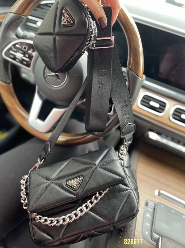 828677 НОВИНКА❤️🔥 Сумка Прада 2 в 1 кожа Цвет: черный фурнитура с лого Ремешок широкий и длинный с Логотипом и регулируется цепочка в комплекте Материал: натуральная кожа Размер: 23/15