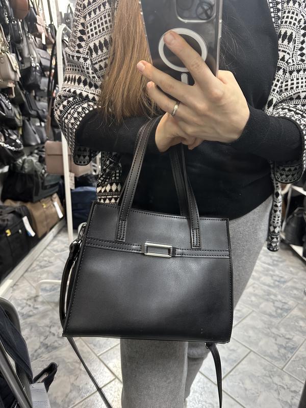 Новая сумочка из экокожи Черный цвет имеет 2 ручки + длинная ручка в комплекте Размеры: выс.19,5, дл. 26, шир. 10 см Недостатков нет
