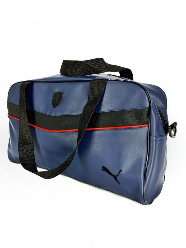 🔥🔥🔥Сумка из кожзаменителя Puma синяя🔥🔥🔥 - Большая спортивная/дорожная сумка. Выполнена из качественного кожзама. Материал мягкий, тактильно приятный на ощупь. - Можно использовать как для коротких поездок и путешествий, так и для похода в спортзал. -в середине большой основной отдел на молнии и два маленьких кармана под ключи, документы. -Сзади по длине сумки расположен большой отдел на молнии. -Мицкие крепления. -Ремень в комплекте, регулируется по длине. -Фурнитура серебро. -логотип: Вышивка. -Размер: Ш 17 х Д 47 х У 27 см. ❤ОПТ
