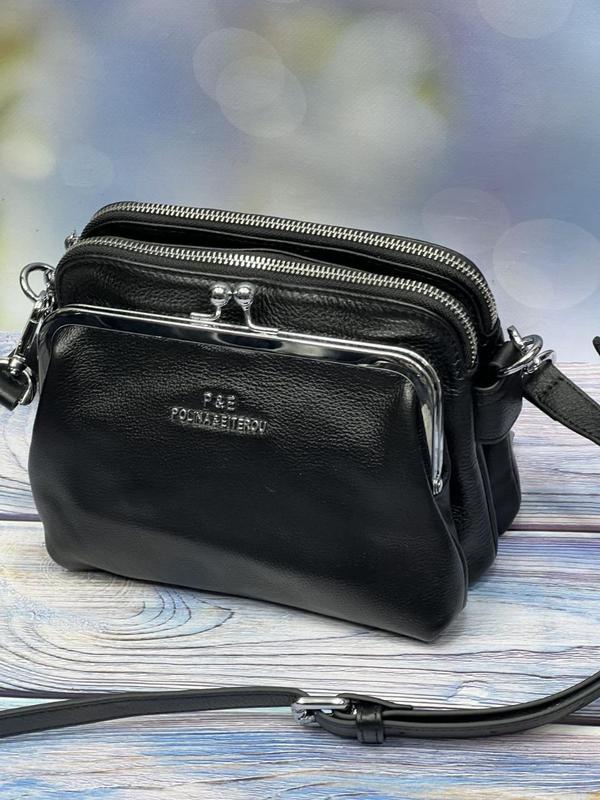 Polina & Eiterou ⠀ Код товару: 1008 B Цвет: Black (Черный) Виробник: Китай Материал: Натуральная кожа Размеры: 21×17×11 Ремешок: 100 см