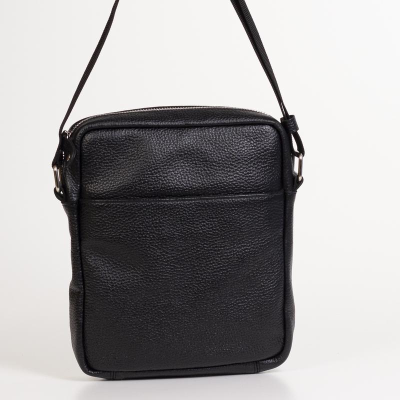 Мужская кожаная сумка через плечо 813510 черная Характеристики: Страна производитель - Украина; Материал - 100% натуральная кожа; Размер - 24*19*4 см. Мужские кожаные сумки практичные и качественные. В них удобно носить личные документы, кошелек, мобильный телефон. Характеристики модели: фабричное украинское производство; мягкая натуральная кожа; молния на сумке открывается легко и удобно; одно вместительное отделение на молнию, в середине которого есть открытый карман и карман на молнии; с лицевой стороны сумки глубокий карман на магнитную кнопку; с тыльной стороны сумки карман на блискавку; внутри тканевая подкладка; плечевой ремень из плотной ткани, несъемный.