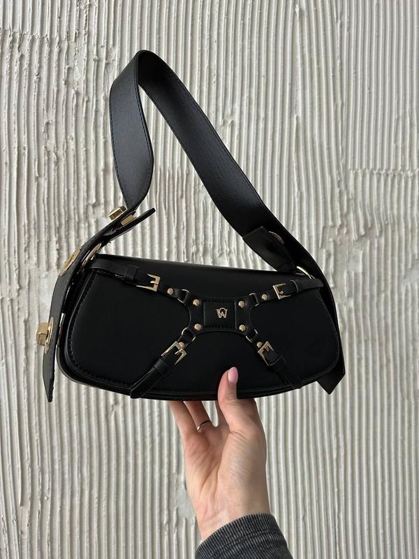✔️Размер: 27.5x14x5 ✔️Материал: Эко-кожа ✔️Описание: Сумка изготовлена из эко кожи. Внутри одно отделение. Подкладка внутри из плотного текстиля. Ручка широкая (4.5 см), а длина регулируется за счет перемещения квадратных элементов по отверстиям