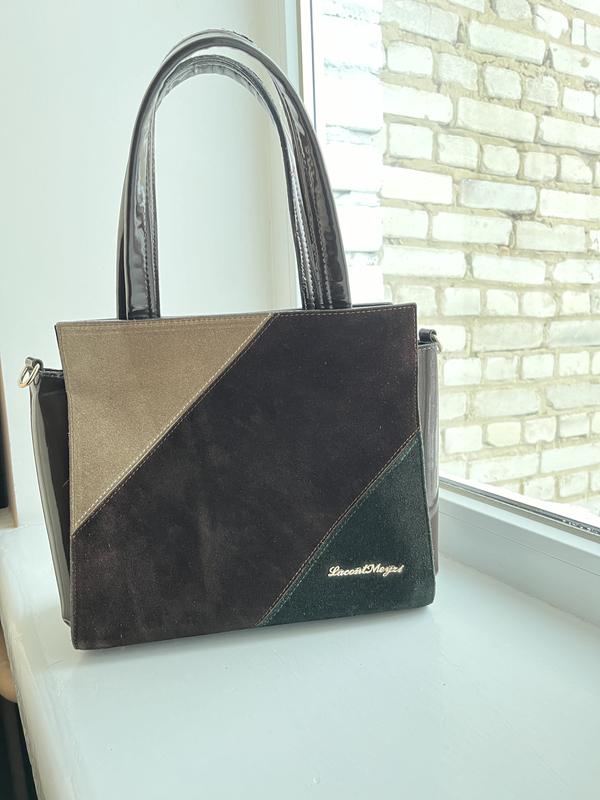 Сумочка лакова , з елементами замші 3 кольорів , без жодних дефектів і подряпин
