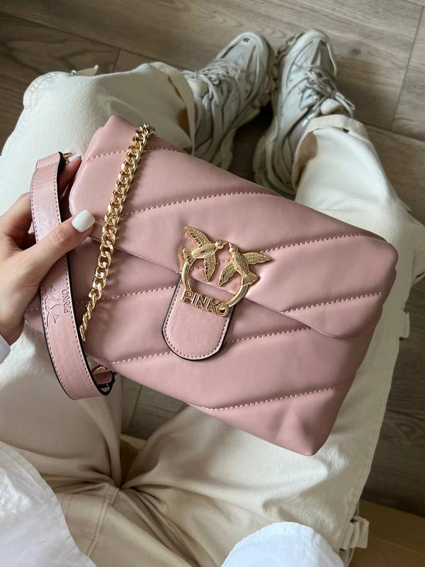 Материал: Эко кожа Размер: 26x17x10 Упаковка: не бренд коробка, бумага тешью, печенье с предсказаниям, конфетти, стекер. 🏷️ Описание: Сумочка выполнена из мягкой эко кожи с золотой фурнитурой, имеет одно большое отделение, маленький скрытый карман, сзади сумки есть фирменное тиснение Pinko, золотая цепочка который регулируется на короткий и длинный.