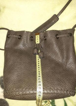 Сумочка торба бренда M&S.Цвет графит.Плотная,по фактуре напоминает зернистую кожу. Нюанс-посыпался кант вверху сумки ,где затягивается..