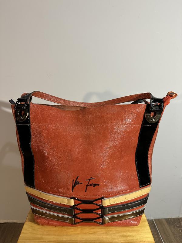 Сумка з натуральної шкіри (окрім нижньої частини), маються потертості, є одна велика кишеня на блискавці