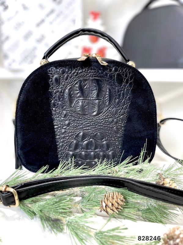 828246 НОВИНКА Н Сумка Валізка 2 відділи замш Кольор: чорна 2 відділи Ремінець регулюється Матеріал: замш натуральный та екошкіра Зустрічні застібки Розмір : 23/18/ 8 ДНО