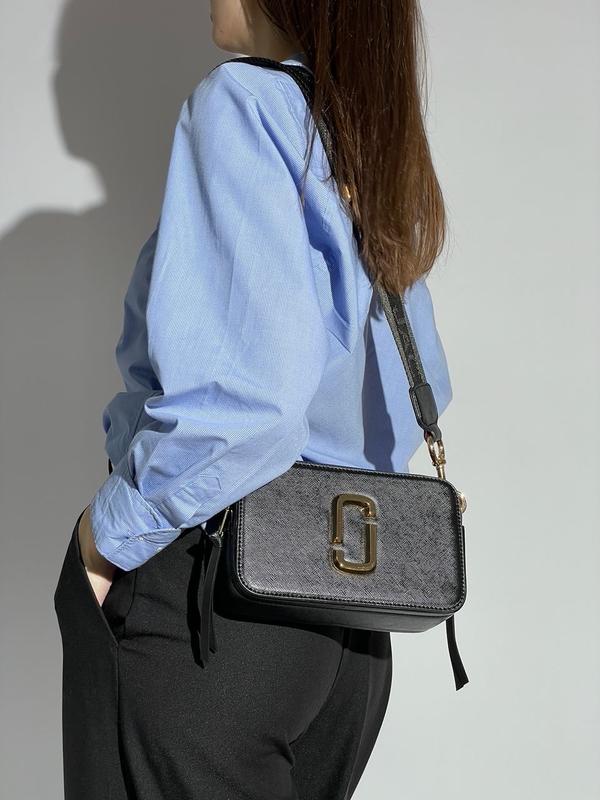 👜 Marc Jacobs The Snapshot Black/Gold Арт: 02131) 📐 Розмір: 21 х 12.5 х 7 см 🧵 Матеріал: Еко Шкіра 🔎 Опис: Сумка виготовлена з екошкіри та текстилю, логотип металевий. Усередині два невеликі відділення, розділені між собою стінкою з екошкіри. На задній стінці сумки є невелика кишенька. Ремінець Marc Jacobs на карабінах, шириною 5 сантиметрів і довжиною від 63 до 105 сантиметрів максимум. Комплектується в брендовану коробку, папір та пильовик (за додаткову плату можна придбати фірмовий пакет та документи).