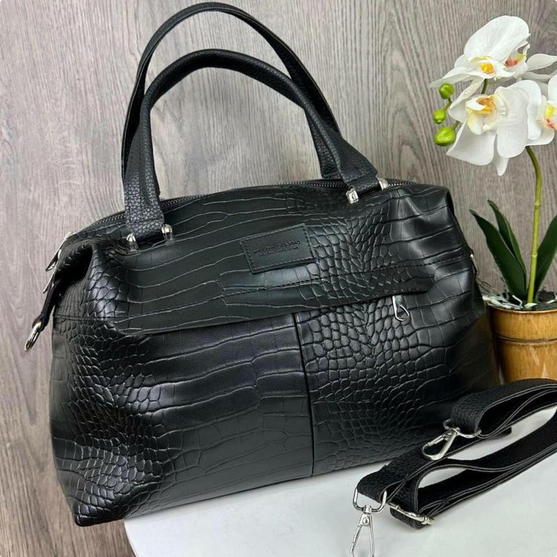 Женская большая сумка на плечо с тиснением под змеиную кожу ### ### ### ### ### Характеристики: ### Материал: качественная и плотная турецкая экокожа, без постороннего запаха; Качественная подкладка (не полиэстер); Длина: 34 см; Ширина по основанию: 13 см; Высота: 24 см; Плечевой ремень на карабинах входит в комплект (можно носить как в руках за ручки, так и на плече) ### ### Оплата и доставка Весь товар в наличии на нашем складе, отправляем Новой Почтой, УкрПочтой. Отправку заказов производим максимально быстро, чтобы Вы как можно скорее могли получить свой заказ. ### ###