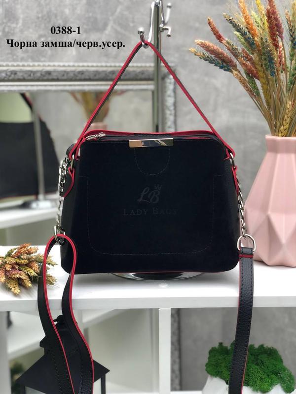 Перед замовленням уточнюйте наявність . сумочка на три відділення. Нат.замша/шкір.зам ширина 24 см., висота 20 см., дно 10 см., ремінець max.150 см. Фурнітура: темний нікель. Три відділення (два відділення на магнітах, одне відділення на блискавці). Виробництво Украина.