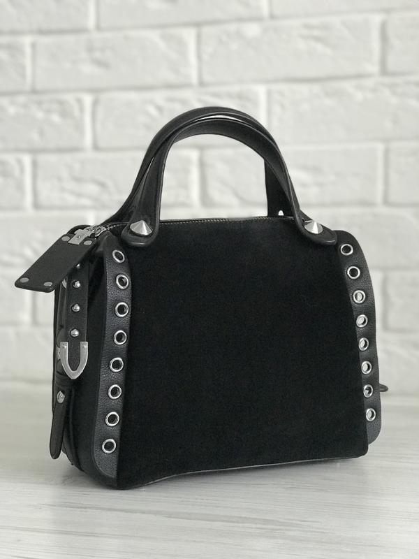 Стильная, вместительная, компактная сумочка. Спереди натуральная замша, сзади и по бокам качественная экокожа. Внутри красивая, качественная подкладка, 2 отделения, между отделениями и на задней стенке есть кармашек на замочке и 2 маленьких кармашка на мелочи. Дополнительно есть длинная ручка, в которой регулируется длина. Размеры: длина 20 см, высота 17 см, ширина 11, 5 см. ❗Перед заказом уточняйте все детали. Отправка после полной оплаты на карту Новой или Укр почтами❗