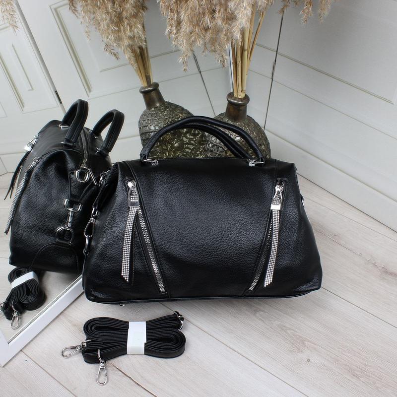 Шикарна новинка 🔥 Код Д252 ☑️Материал: эко кожа 🔥 ☑️Размер: 32 см ширина, 21см высота.13 см глубина. Ремешок регулируется до 135 см. ☑️ Сумка закрывается на молнию. В середине открытые кармашки и кармашки на молнии. На обратной стороне и спереди карманы на молнии.