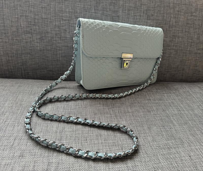 Новая сумочка, модель Шанель, очень красивого небесного цвета, с багровым красным подкладом. Выполнена из натуральной качественной плотной кожи, с тиснением-крокодил. Производитель известный бренд Miraton. Сумочка новая, можно на подарок. Цена бутика на сегодняшний день 5200грн.