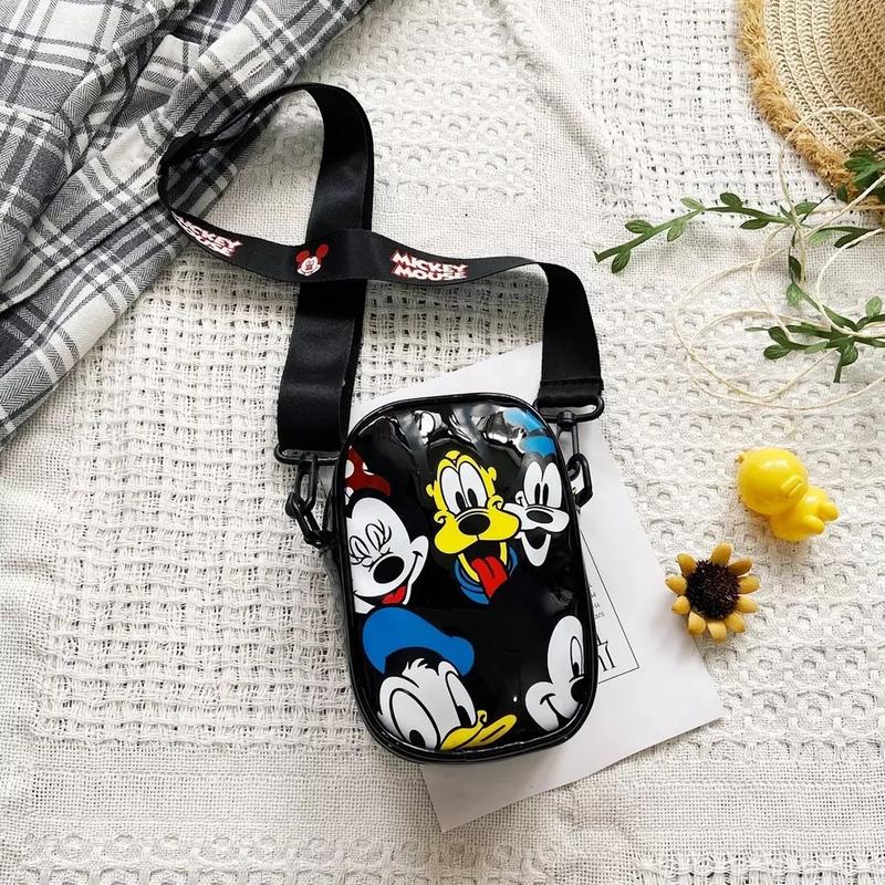💥❤DISNEY Тренд❤💥 ◽Классные компактные сумочки кросс-боди для девочек и мальчиков 💛👌 ◽ Черный цвет. Также в наличии серебристые, желтые и белые ◽16*11*4см. Текстильный ремешок с принтом. Материал PVC