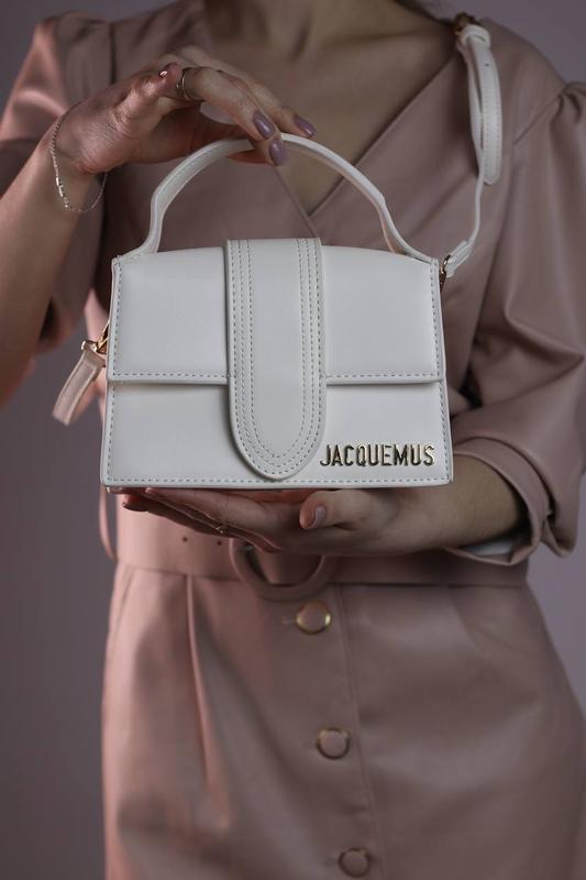 Jacquemus white Арт: 0108 Опис: Розмір: 20х13х6.5 Матеріал: еко шкіра Колір фурнітури: золото Міні сумка Жакмюс виконана з якісної, приємної на дотик еко шкіри. Прикрашена металевим, золотим логотипом Jacquemus. У сумці одне основне відділення, має бокову нашивку з еко шкіри з написом бренду. Закривається на магнітний замок. Підкладка з еко шкіри. На звороті є відкрита кишенька. В комплекті змінний плечовий ремінь з еко шкіри, який регулюється. Пакування: брендова коробка, наповнювач, папір. ціна продажу 1490 грн.