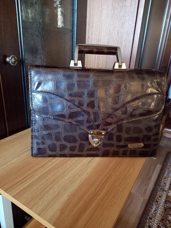 Женская сумка коричневого цвета, принт под кожу крокодила,не была в пользовании, можно сказать что новая.Розм.высота-23см,длина-43см,ширина внизу-9см