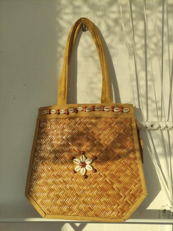 из натуральных материалов ( ткань, соломка, ракушки)