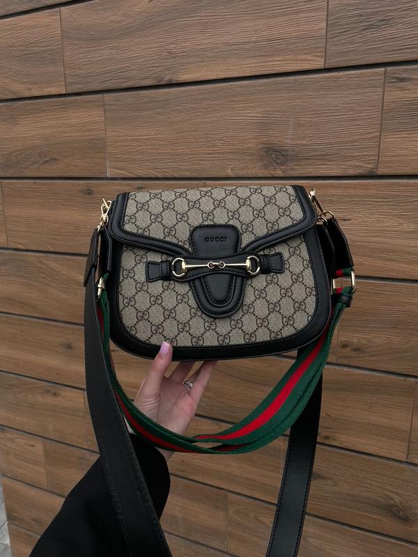 👜 GUCCI Lady Web Grey/Black (Арт: 13057) 📐 Размер: 26 х 20 х 7 см 🧵 Материал: Эко Кожа 🔎 Описание: Сумка выполнена в комбинации кожи с фирменной канвой. Внутри одно сплошное отделение и два карманчика, один из которых на молнии. Подкладка внутри сумки из плотного ребристого текстиля коричневого цвета. В комплекте идет 2 ремешка на выбор. Один зелено-красный текстильный, с регулируемой длиной от 67 до 113 см. Второй из черной эко-кожи длиной 105 сантиметров. Комплектуется в брендированную коробку и брендированная бумага (за дополнительную плату можно приобрести фирменный пакет и документы).