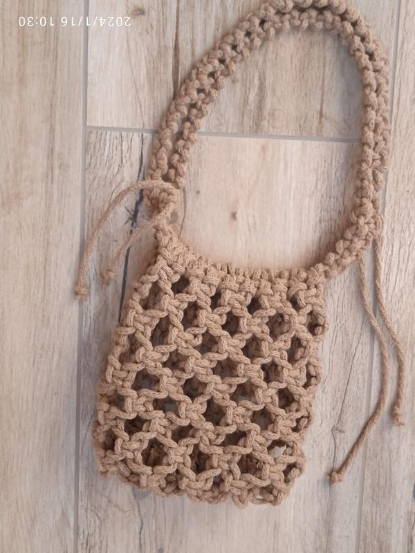 мини-сумка макаронная ручная работа натуральная нить размер 18/17см, ширина 4 длина ручки 47