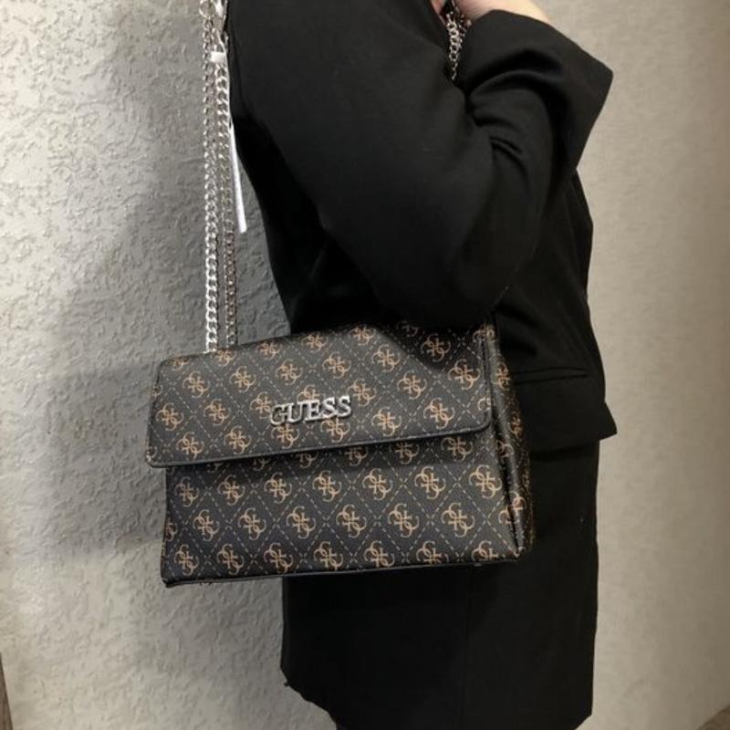 ХАРАКТЕРИСТИКИ : Бренд: GUESS Материал: PU Кожа Цвет: коричневый Размер: 25 x 17 x 8см Внутри 3 отделения, 3 кармашка (один на молнии) Снаружи один кармашек на молнии Наличие фирменных оттисков