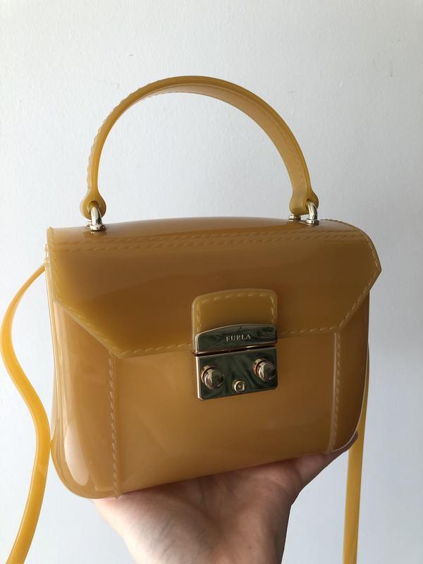 Женская сумка Furla горчичного цвета из силикона, с металлической фурнитурой