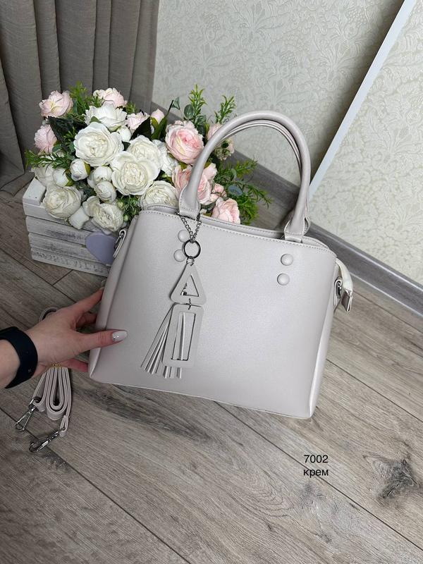 ВІДГУКИ Є💗 Наявність уточнюйте в смс💌 Передоплата 150 грн,на карту.Номер я скидаю📱 Величезний вибір сумок і взуття 🛍️ чесні умови і швидка Відправка 🚀🚛 🔥🆕Код 7002 🔥🆕Каркасна ✔️класична сумка на три відділення. ✔️Еко.Шкіра ✂️Ширина по дну 32 см.,ширина зверху 27см., висота 23 см.,дно 13 см.,ручки заввишки 16 см., ремінець 130 см. ✔️Всередині 3 окремих відділення, бічні кишені. ✔️Форма: каркасна.