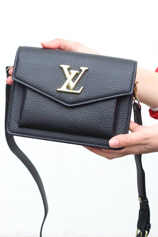 Louis Vuitton Mylockme black Арт: 0409 цена: 1650 грн. Описание: 💎Размер: 20х15х7 💎Материал: Эко кожа Сумка изготовлена из качественной эко кожи. Имеет два отделения, одно застегивается на молнию. В середине есть маленький карман. Подкладка текстильная. Ремень выполнен из эко кожи, регулируется длиной до 120 см. Фурнитура золотистого цвета. Упаковка: брендовая коробка, бумага, наполнитель.