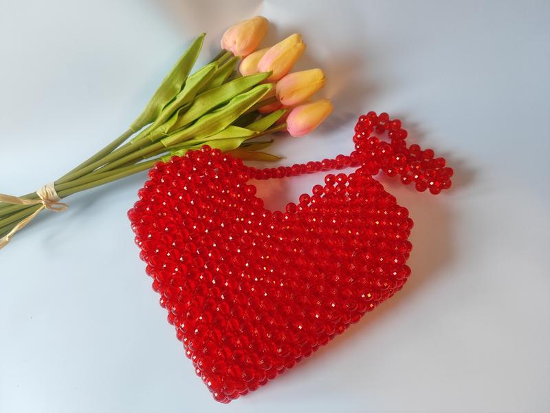 Сумка в форме сердца из бусин ручной работы, идеальный, стильный аксессуар, который дополнений Ваш образ. Материал: бусины Размер сумки: 17*17 Шлейка на плече: ажурна з намистин