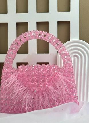 👆Кришталева сумочка декорована натуральним пірʼям. Кольори : чорна🖤, вишня🍒 , рожева 💕. Розмір 22,5*13*5см Натуральне пірʼя Має 1 великий відділ Ручна робота