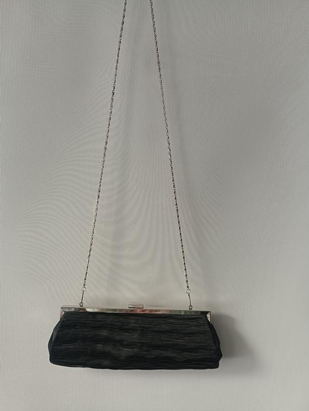 сумка, черный атлас, на цепочке. Длина -23см Высота -11 см.