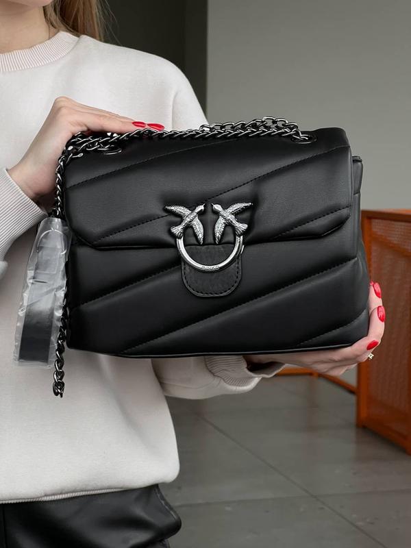 Pinko Puff Black Logo Bag цена: 1450 грн Размер: 25 x 19 x 11 см Материал: эко кожа Описание: Люкс качество! Сумка выполнена из эко кожи. Внутри одно большое отделение, также есть маленький кармашек. Подкладка внутри сумки из качественного черного текстиля. Ремешок - цепочка с ручками из эко кожи на которую нанесен логотип бренда. Ремешок регулируется. Бесплатный комплект: брендовая коробка + упаковочная бумага. Платный комплект +160 грн: брендовый пакет, пыльник и набор документов.