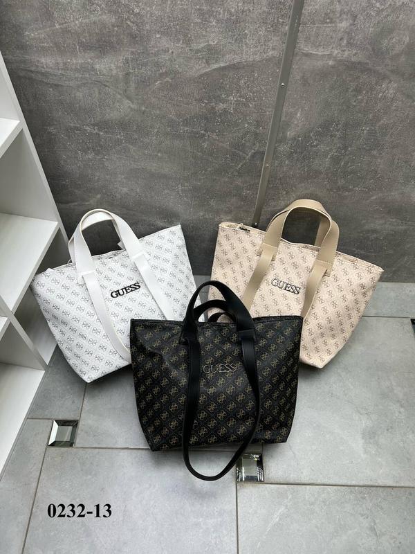 Новый отшил. GUESS – содержимое, большая и практичная женская сумка-трансформер - 680грн Код 0232-13. Харьков. Ширина по дну 32 см. Ширина зверху 42 см. Висота 30 см. Дно 14 см. Высота длинных ручек - 28 см. Фурнитура металл - цвет серебро. Одно отделение на молнии, разделенное пополам перегородкой на молнии. Внутри открытый карман и карман на молнии. По бокам сумки карабины для затяжки уголков внутрь. Над главной молнией кнопка. На обратной стороне карман на молнии. Турецкая экокожа.