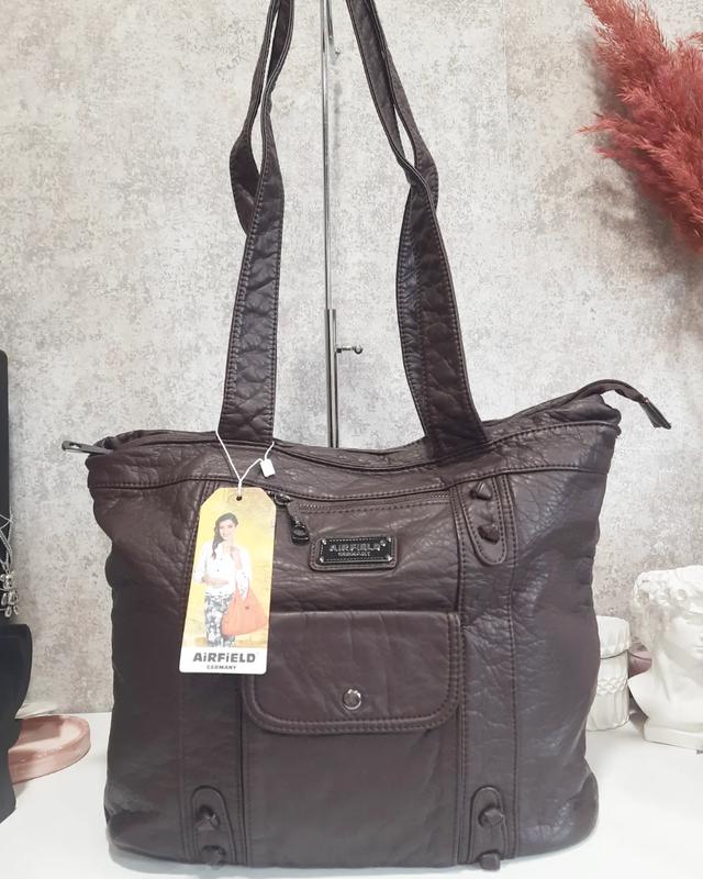 Женская сумка от немецкого бренда Airfield Мягкая экокожа Сумка очень вместительная 1 основное отделение с дополнительными карманами внутри 3 доп кармана извне Плотный подклад Размер 30×33×12 Длина ручек 84см