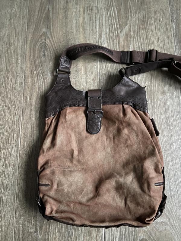 Сумка Aunts&Uncles Оригінал Матеріал: шкіра/бавовна Заміри: ширина верх 30 см., середина 34 см., висота 36-37 см., дно 30*10 см., довжина шлеі макс. 135 см.