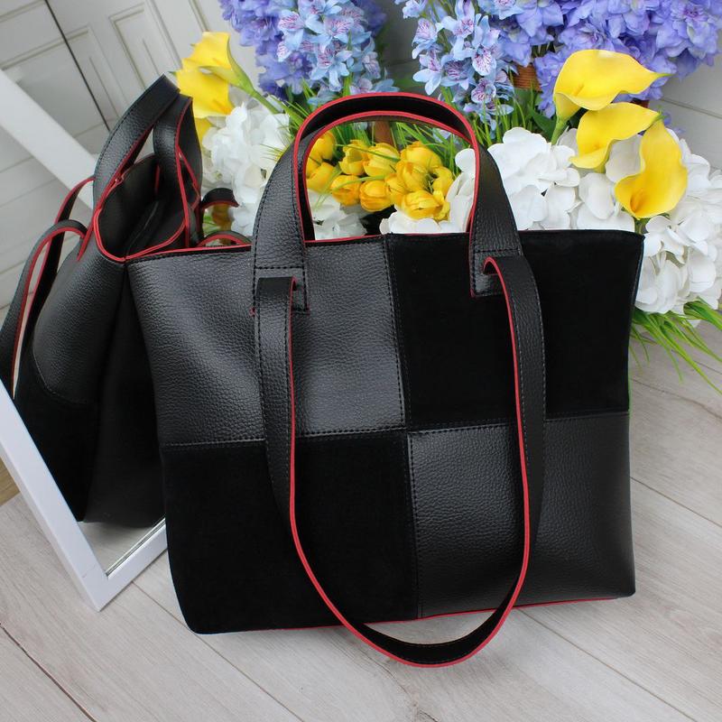 Это любовь с первого взгляда 🔥Большая вместительная сумка. Вмещает формат А4♥️ Код: Д636 ✅ Материал: эко кожа / натуральная замша 🔥 Подкладка -плотная ткань ✂️Размер: ширина внизу сумки 34см, ширина вверху сумки 40 см., Высота 30см, дно 15 см. Высота плечевых ручек 30см. ✅Сумка закрывается на молнию, два отделения, по середине перегородка-карман на молнии. Открытый карман и потайной карман на молнии. На обратной стороне карман на молнии Производство 🇺🇦