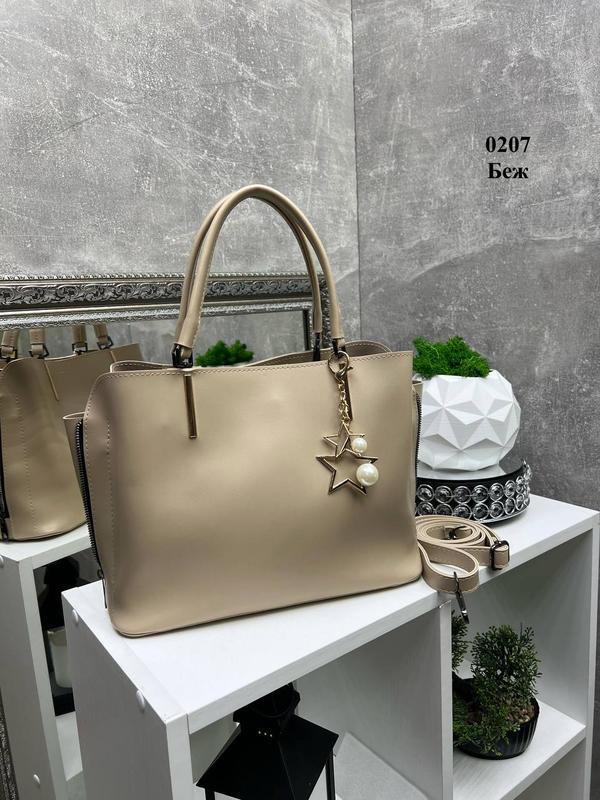 Снова в наличии, но с черным брелком! Три отделения! Очень удобная модель! Стильная и вместительная, универсальная сумка на три отделения, с брелком, дорогой турецкий материал - 680грн Код 0207. Харьков. Брелок в черной фурнитуре! 30 см ширина по дну. 27 см ширина зверху. 23 см высота. 12 см глубина. Высота ручек - 16 см. Максимальная длина плечевого ремня - 130 см Три отделения: среднее отделение на молнии, внутри карман для телефона и внутренний карман на молнии. Остальные два отделения на магните. По бокам сумки молнии, позволяющие увеличить внутренний объем. Эко кожа. Дорогий турецкий материал.