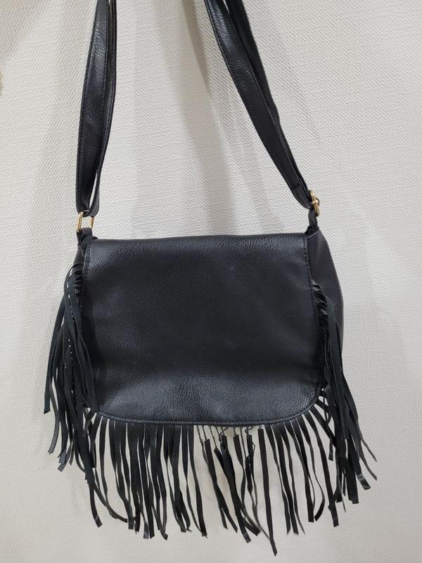 Сумка черная с бахромой. Ручка регулируется, внутри одно большое отделение и маленький карман