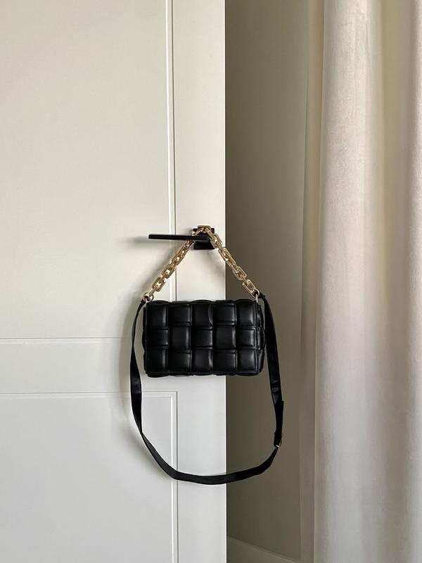 Женская сумка из качественной эко-кожи. Цвет черный. Короткая металлическая цепочка золотого цвета, длинная ручка регулируется. В середине одно большое отделение и кармашек на замке. Содержимое, мягкая, приятная на ощупь, хорошо держит форму.