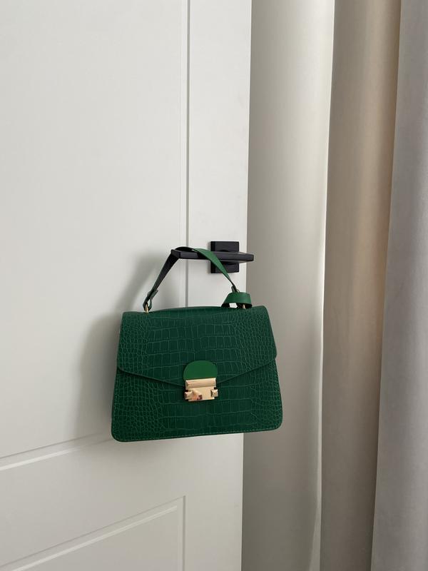 Женская сумка из качественной эко-кожи. Цвет - зеленый. В середине одно большое отделение и отделение на замке. Длинный ремешок в комплекте.