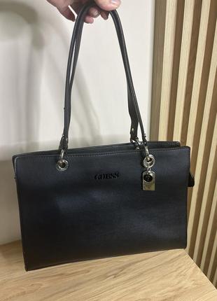 Сумка Guess оригинал Модель Guess Black Isla Logo Charm Код стиля: VE788923 Классическая сумка от Guess . Застежка-молния ,внутри 2 отделения, карман на молнии Цвет: черный Материал: искусственная кожа/PU Размеры: 37 x 27 x 13 см Состояние хорошее