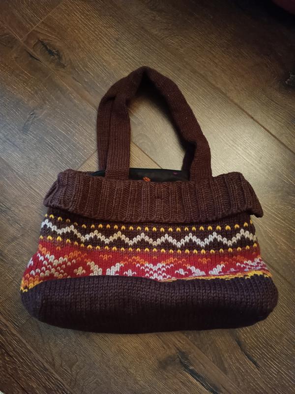 В'язана сумка, стан відмінний. Розмір корпусу: 35*25 см. Висота ручок: 23 см.