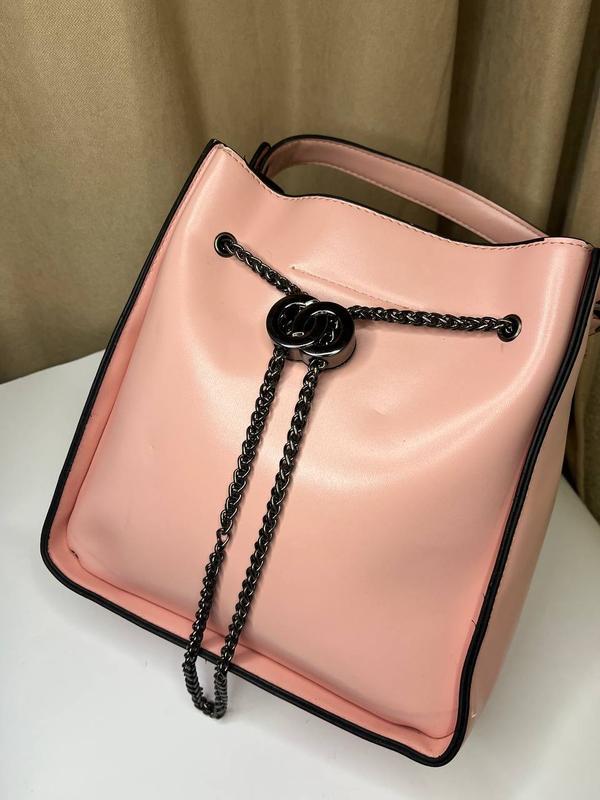 Жіноча сумка ніжного персикового кольору. • має замочок; • дуже вмістка; • спереду аксесуар, який регулює ширину сумки; • має невеликий дефект (додаю фото)