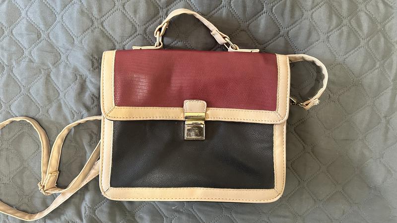 Зручна сумка на кожен день. Всередині один карман на замочку (боковий). В хорошому стані. Є невеликий дефект ( на фото показала). Розміри: висота 21,5 см, ширина 26 см, глибина 16 см.