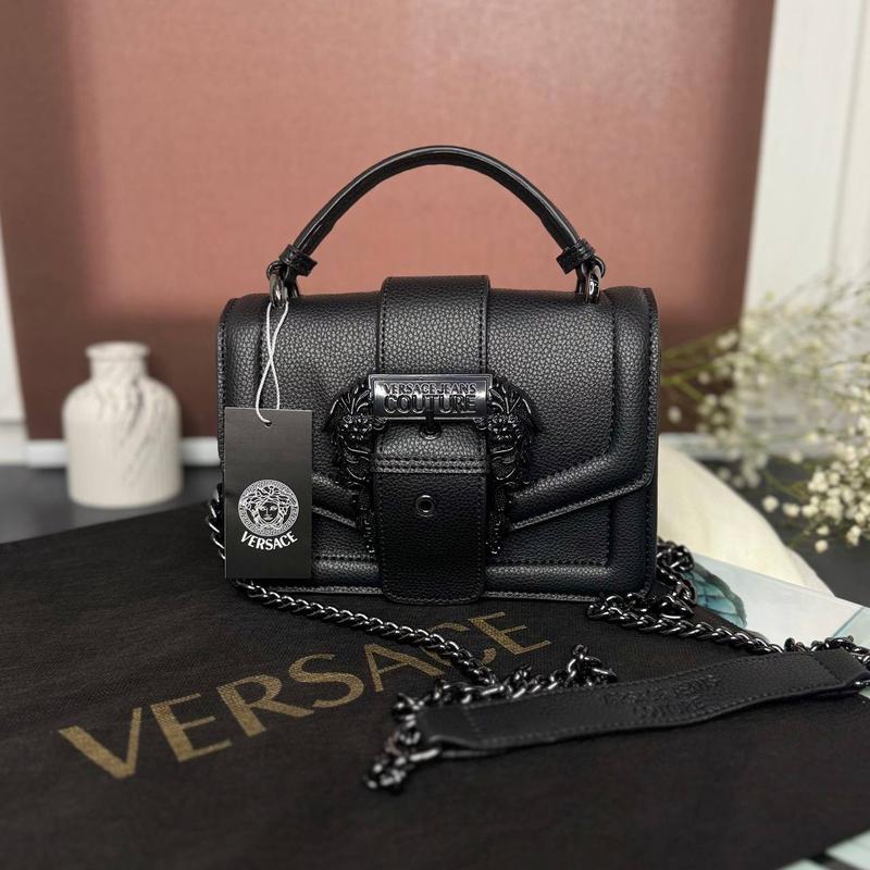 Сумка жіноча Versace • Код товару: VE700 • Колір: чорний • Матеріал: еко шкіра • В комплекті брендовий пильовик Розмір: Висота 14,5 см Ширина 20,5 см Товщина 6 см Довжина ременя (ланцюжка): 122 см Характеристика сумки: - закривається клапаном на магніті; - внутрішня кишеня на блискавці; - знімний ремінь-ланцюжок з карабінами; - ручка для носіння в руці.