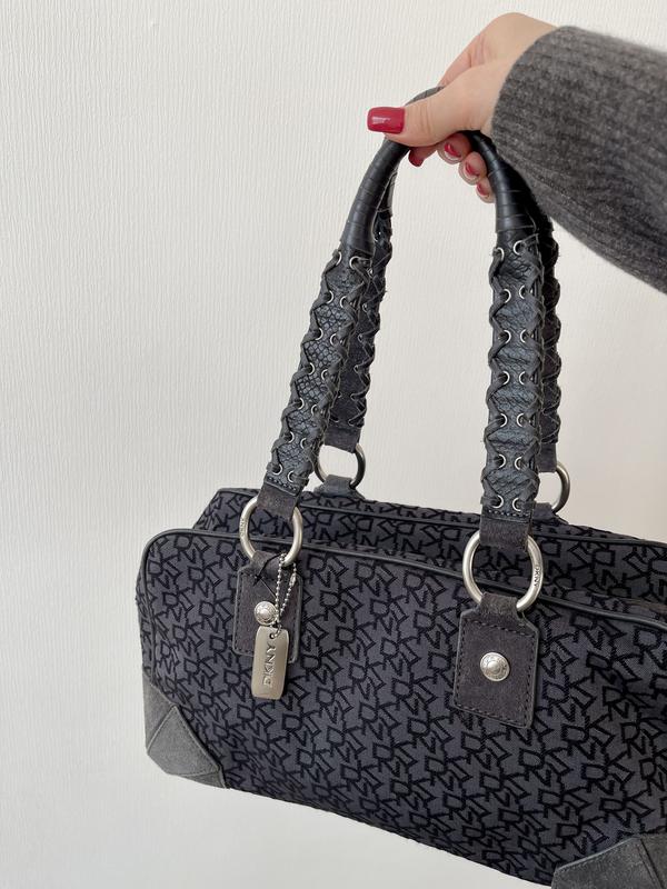 DKNY Сумка выполнена в комбинации натуральной кожи/ замши и плотного канваса монограмм. Сумка очень вместительная, вместит все и даже еще чуточку ) имеет 1 большое отделение и дополнительные внутренние карманы. Серебряная пробрендованная фурнитура состояние идеал 🔥 ⠀ цена 2900 грн ✔️ ⠀ размер one size замеры: высота 18 см длина 34 см, ширина 12 см ⠀ параметри на фото: 167 см, 83-62-91