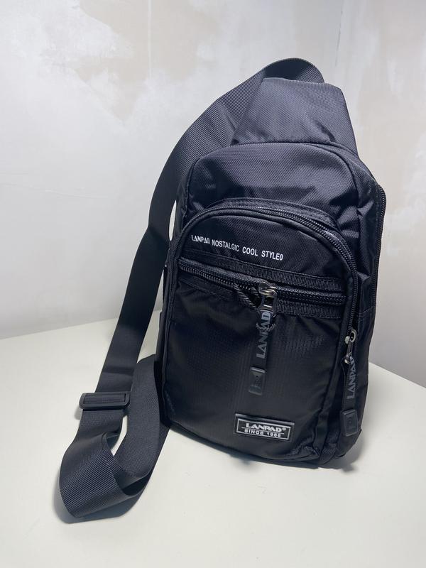 Сумка чоловіча Lanpad. Одне основне відділення та одне додаткове, закриваються на блискавці. На фасаді ще одна невелика кишеня на блискавці. На звороті знаходиться кишеня на блискавці. Регульований ремінь, шириною 4см. Можна переставляти на ліву/праву сторону. Розмір 15*25*10