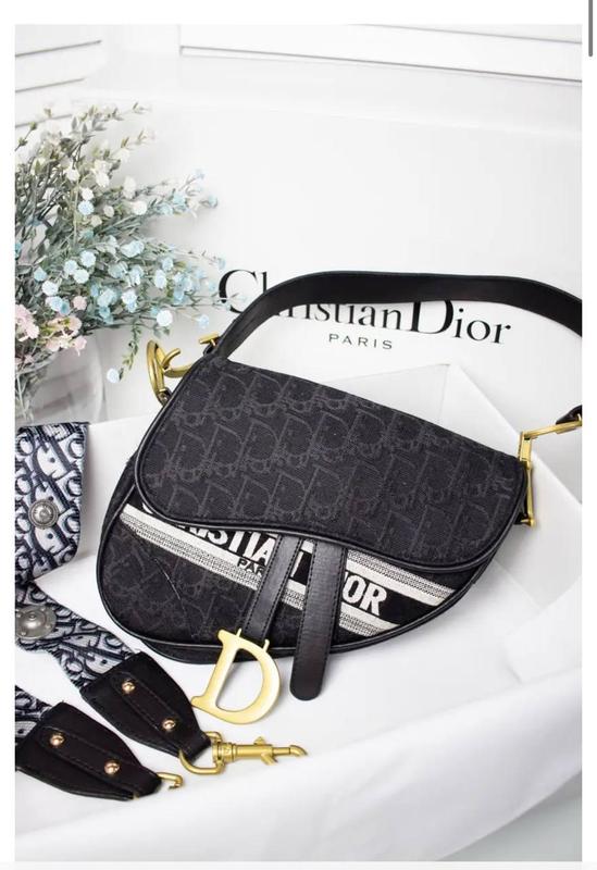 Жіноча сумка сідло Крістіан Діор чорна текстильна Чудова жіноча сумка Крістіан Діор в одне відділення з підкладкою. Всередині кишені на галявині, зверху миють лейбл фірмовий від Діор. Вся фурнитура і ремінь брендується. Тип застежки: клапан. Колір сумки: чорний з перфорацією Качечая фурнитура- під золото. Ремінь регулюється. Матеріал: Качуча еко-кожа Висота: 22см Ширина: 26см Глибина: 10см