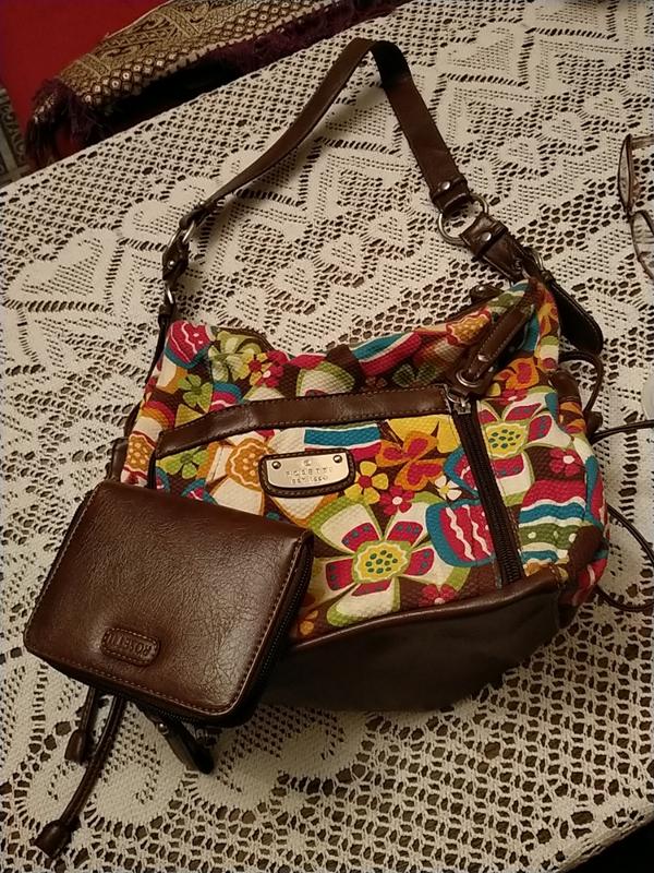 коттон 100%, спереди большой кармашек на молнии с прикрепленным кошельком, внутри одно отделение с тремя кармашками, сбоку два кармашка на кулиске, размер 30*23, ручка 60см.