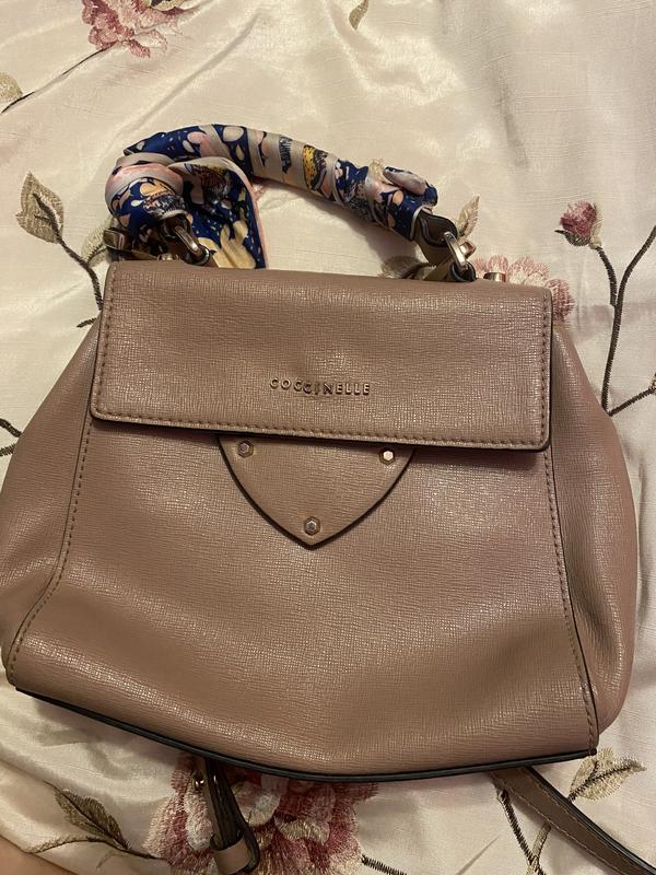 Сумка відомого італійського бренду Coccinelle. Розпродую свої сумки. Ця сумка у розмірі mini, але вона дуже вмістка , у чудовому виконанні зі шкіри, на ній не залишається сліди потертостей. Серед недоліків єдине - тріщини на короткій ручці, яку стильно обернула коротким шарфиком, і здається, так дуже стильно та оригінально.
